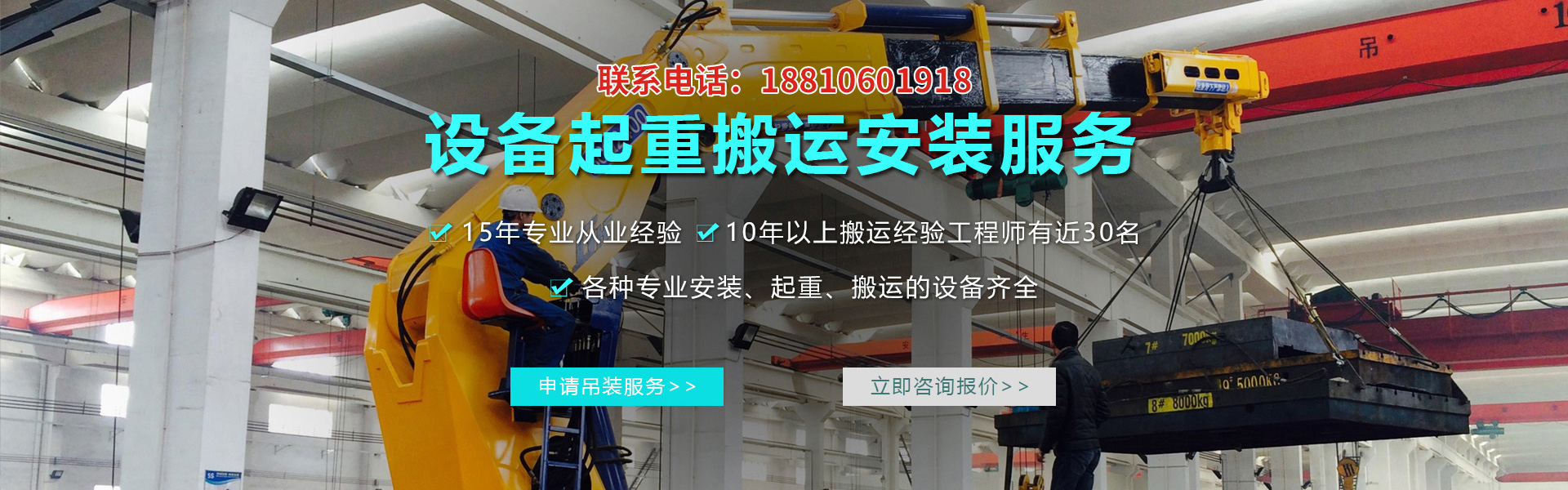 久泰起重主營業務為設備起重、托運吊裝、精密數控設備搬運安裝、工...